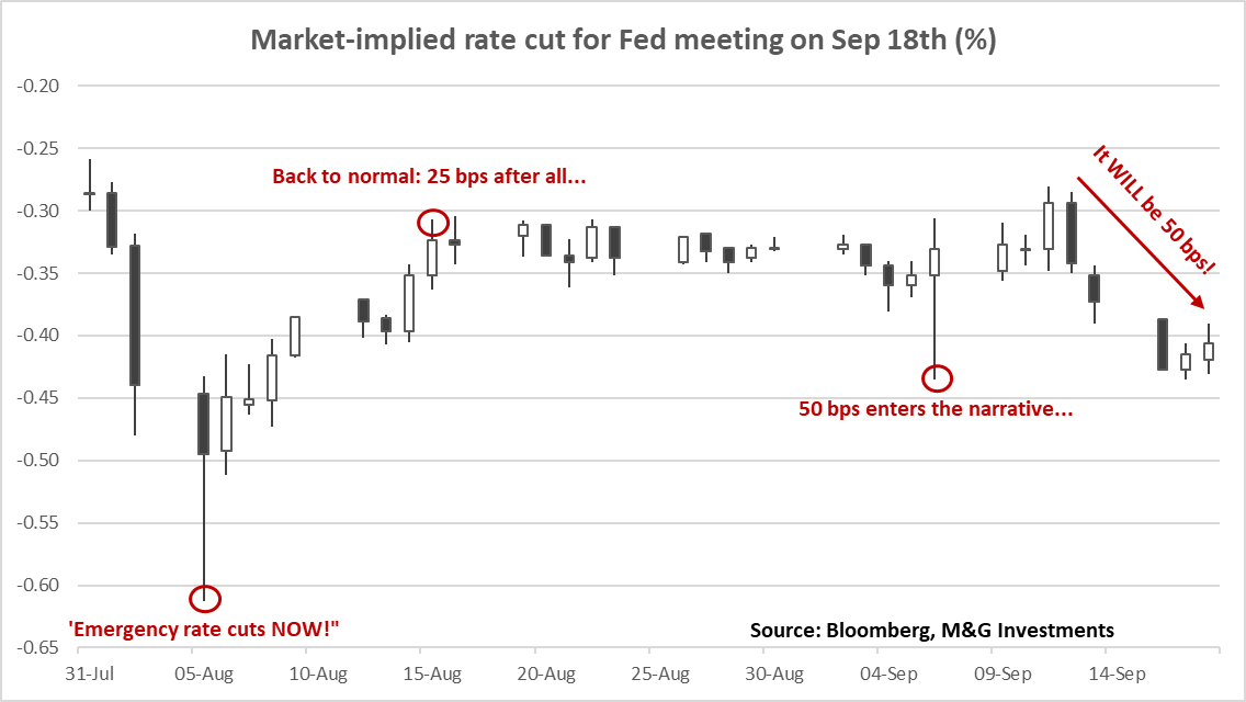 The bad: 50 bps cuts only happen when we’re already staring into the abyss… Is the Fed responding to a rapidly deteriorating jobs market? Do they know something we don’t? Buy (more) gold?!?