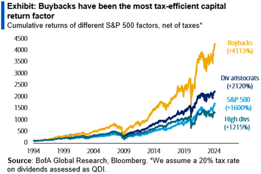 Buybacks have become a more and more popular tool to return cash to shareholders, often at the expense of dividends*