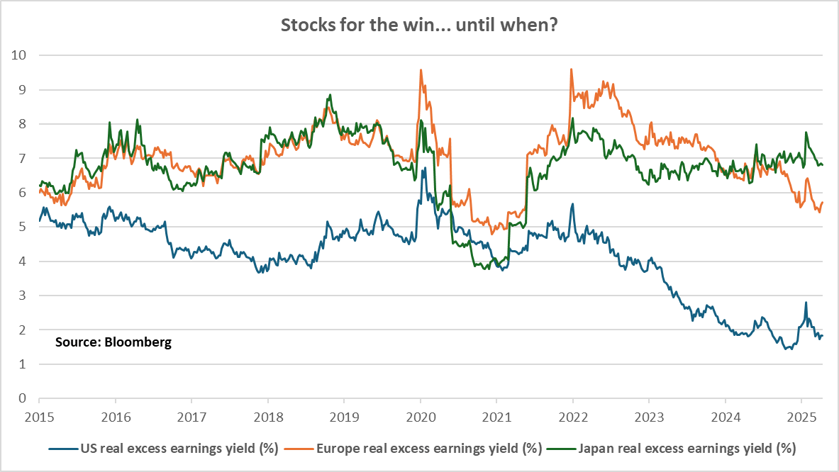 Price action: Unless European and Japanese investors mysteriously and suddenly catch the ‘buy the dip’ virus from their US counterparts, fundamentals (and liquidity) need to work harder to keep closing the large long-term performance gap vs US stocks.