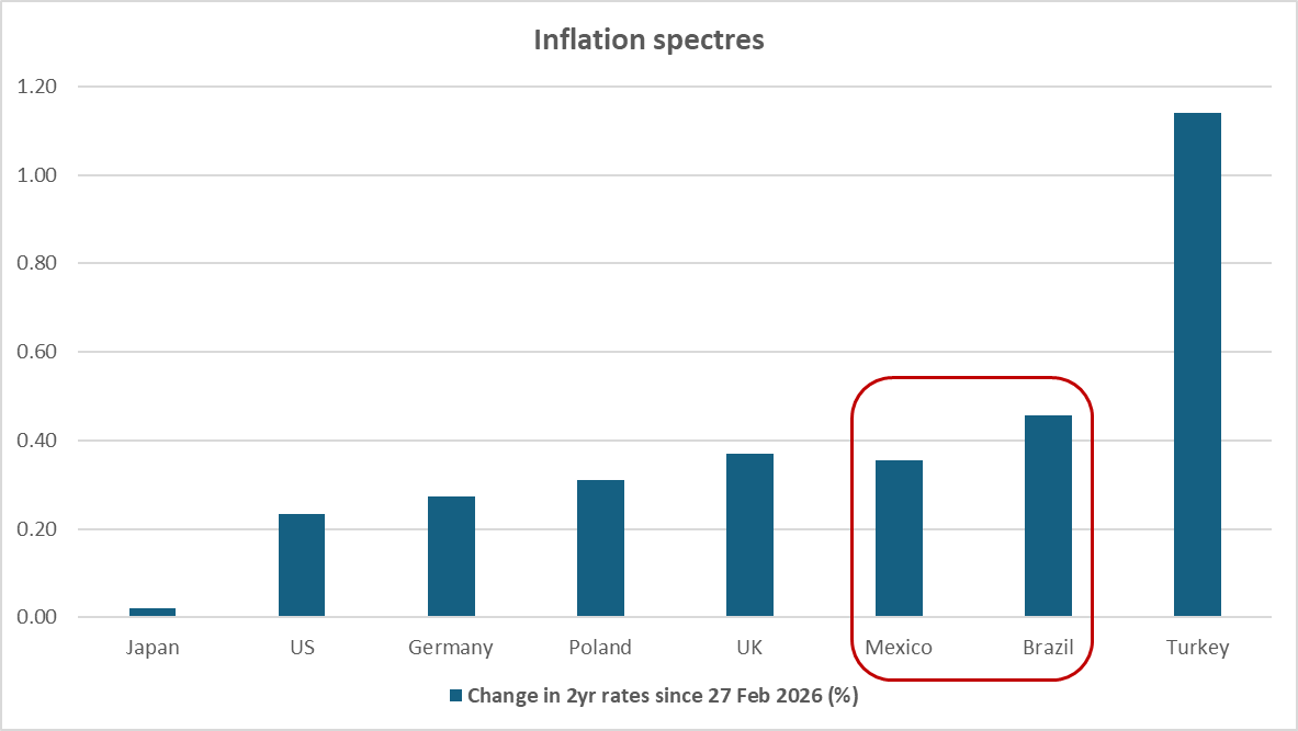 Brazil and, to an even larger extent, Mexico however stand out, as their vulnerability to higher energy prices should actually be lower than Poland, for example.