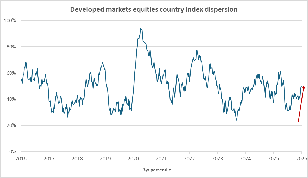 Unsurprisingly, equity markets have responded and we can observe a spike in the dispersion of returns.