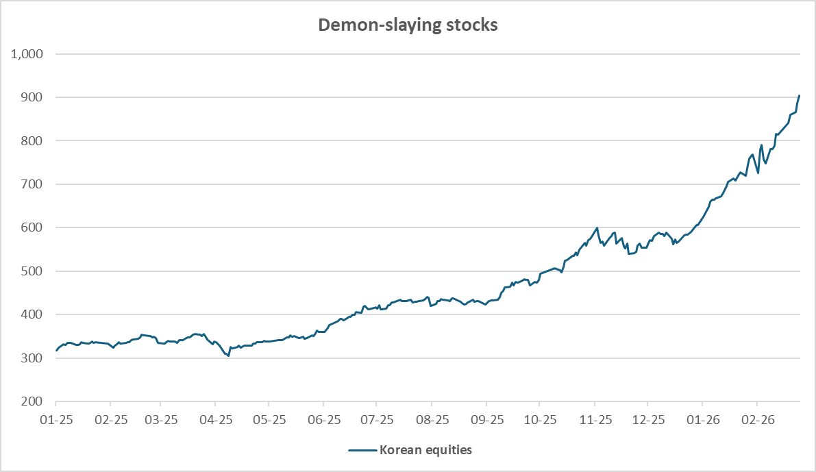 To take just two examples, Materials stocks had their best start of the year since 2006, while Korean equities are up (another) 56% this year alone.